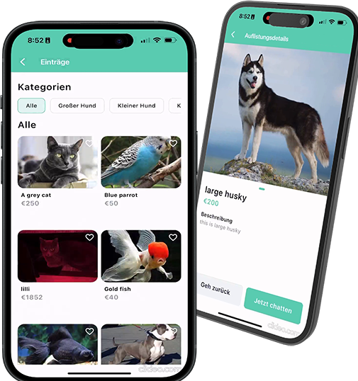 Integrierter Marktplatz für Tierbedarf: Finden Sie alles, was Ihr neues Familienmitglied benötigt, direkt in unserer App. Von Futter über Spielzeug bis hin zu Pflegeprodukten – unser Marktplatz bietet eine breite Auswahl an hochwertigen Artikeln, die Sie bequem erwerben können.